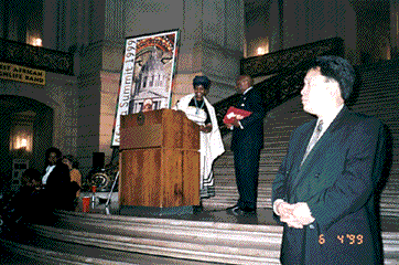 Mayor Brown presenting gifts to the Mayor of Soweto.