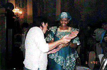 Shane Eagleton presenting his carving to the Mayor of Soweto.