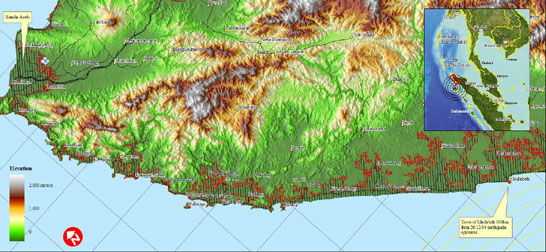 Help and concern from all over the world brought many world leaders and nations together. Now that things have settled the real practical issues and projects are making some headway. Major diseases like small pox have hit some areas in India. There have been breakouts of Malaria and Cholera in other nations - as medicines, doctors and nurses hit the affected areas - some quick and immediate relief will be brought to the affected victims. The people of United States unlike our Village Idiot in the White House have responded well. The U.S.S. Abraham has done all it can and has won the praise of countries and people well versed with logistics - the world over. Europeans have given lots of money and more they have sent teams of helpers in all fields to bring some solace to the affected region - the hardest hit Indonesia, Thailand, Sri Lanka and India. The American media has stop talking about the Tsunami for hours on end and has in recent days only focused on some major events. While too much talk and little action is not good - it is always good to keep the facts in the news so that the major issue of help and compassion is not easily relegated to the back burner. There have been a lot of satellite maps available that now give us a very good idea of the havoc created by the Tsunami. I will post two with this article. In the mean time we hope, pray and act as best we can to bring solace to the affected people but mostly the children that need our help most. |