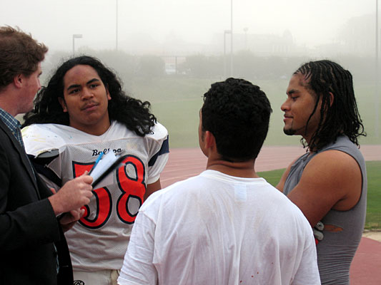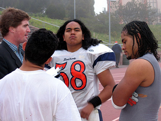 I attended the game between Lincoln and Balboa and Balboa lost. During this game by good friend Andrew Vai fractured his arm and I think this loss of a good team player did not bring out the best in Balboa. The game between Balboa and Mission High was another story. October 20, 2005 at Kezar stadium McLeod Bethel-Thompson, Mape Galvega, Paradise Vaovasa, Oliver Galvega, Peter Vasovasa, Asafo Ia, John Kalave, MacManis Tago, the other Balboa players and in spirit Andrew Vai who was visiting his doctor to check his operated arm did very well. Kudos to the team, the coaches, the teachers, cheer leaders. Balboa High School was playing Mission High School and the game was much better then the game I witnessed between Mission and Lowell. I know Lowell won that game but the Lowell High School plays were boring and my hope was that Mission should have some how counter attacked the Lowell plays and defeated Lowell. This article is not about Lowell who I hope will meet a good team like Balboa and learn a lesson or two about good American football. It was difficult for me to figure out the players on the football field as I had no roster to go by. But just judging from the moves and stature of the players I can confidently say that Mape Galvega and John Kalave performed very well for Balboa. I want to say Peter Vaovasa did well but he can do better the next time around. Just kidding brother! Balboa High School has a good team and a fine line up of some excellent Samoan Warriors. I see that the spurring shouts before the game are heavily influenced by the Haka dance and other Samoan Warrior battle cries. Now what could be a better influence then that to make our youth play better and win? Remember good warriors are well disciplined. Head coach Sully and Offensive Coach John Nauer that have been training Mission High are working very hard. Frankly speaking I loved the game between Mission and Balboa. Mission made too many silly mistakes and Balboa took advantage of the situation and made the best of it. For some strange reason the Mission Quarter Back DeAngelo could not produce. Instead of running forward; again and again he ran towards his own goal line and was taken down by the fast approaching and fierce attacking Balboa players. DeAngelo did this so many times. The first touch down came from Mission High and should have set the tone. I saw the Balboa High School team taken a back but then as any team should do they produce the fire that the Mission High School team lacks. There is no way any team can just resign to fate and not play the game without enthusiasm. Mission High School can make good stuff happen but it has to happen with hard work and determined focus. Again it is time the San Francisco Unified School District invest in the American Football games on the High School Level. It is time San Francisco Park and Recreation and the richer school like Saint Ignatius, Sacred Heart, and the others provide some support to the poorer organized schools. Let us be innovative when it comes to supporting our youth. It is a shame when the Score Board is not lit up and some one like me cannot follow the precise score. It is a crying shame when there is no announcer to spice up the game and cheer everyone. The so called lovers of sports from the Corporate World could step up but the initiative should be taken by the Commissioner of SF Unified School District for Sports. The various SF Unified School District principals should address the inadequacies of the essential basic elements that make any sports event interesting. I admire the few staunch parents and supporters that spend their own money to provide some of the essential amenities. It is easy to talk the talk but harder to walk the walk. We see that all over the place when it comes to the San Francisco Unified School District. I wish both the Balboa High School football team and Mission High the best. My take is to facilitate and make good stuff happen on all levels. My wish a good education so that the disciplined football players can say they all played well on the field but that they all strived very hard to get the best education. I have always admired the coaches and want to thank all the coaches from Balboa High School and Mission High School and all the other schools for doing a very good job. To the principals of both schools I say I understand the underlying factors that face you daily linked to crime, health, safety, poor parental control, lack of money, and a host of other critical issues. The community should work with the High Schools. To the parents I say love your children and if you say once a day that you love them that will take your children a long way. To the teachers that work so hard and play hard I say I admire your tenacity to give our young women and men the best you can give. Your reward knows no bounds and good teachers are very hard to find; much less to keep. Good teachers make the best schools. To the football players that I love so much I say; do your best on the field but even more off field. Each and every one of you can be a model if you do well in class and carry out that same spirit on the field. I have met some fine youth both at Mission High and Balboa High School. I want to thank the Cheer Leaders of both Balboa High School and Mission High for doing a nice job. I watched you all and noticed the friendly gestures and love that you all share. Football like any other game should bring people together and make us all better human beings. It should educate us to work as a team and to use our talents to make this world a better place. I am very proud of Mape, Peter, and Andrew from Balboa but I can say the same of Bobby, DeAngelo, and Amataga from Mission High. Give your best and we will support you but always remember guys: we love you all. Now go make those touch downs. |