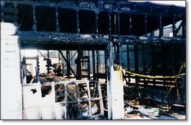 A closer look at burnt out garage.