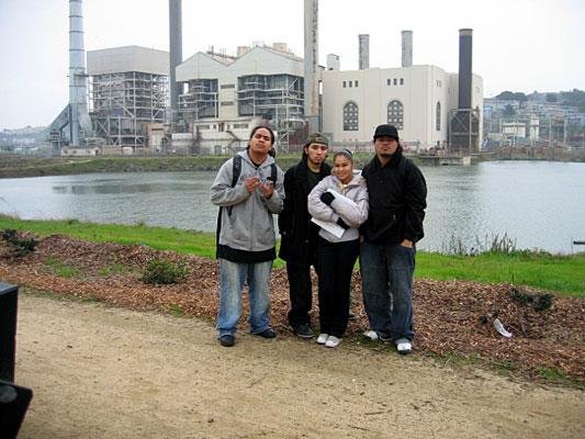 So when some students from Balboa came to me for help to understand the power plants and the cumulative impact of the pollution in the Bayview Hunters Point - I was more then happy to help them even though it was a Saturday morning. < The appointment was made at 10 am and Peter Vavoasa, Andrew Vai, Karla and Sergio all came to my office for a short talk on the history of power plants and other important facilities that provide services like Clean Drinking Water, Sewage, and of course the issue at hand Power Plants. At around 10:30 am my good friend James Morrison arrived and we took a tour of the Mirant power plant and then went to check out the Hunters Point Power plant. The students enjoyed the tour and following the tour we all went to have a hearty breakfast at Costa Brava. The Balboa High School students will give a presentation at School. Hopefully they will discuss about the benefits of electricity but also the pollution factors. I hope they remember about particulates that adversely impact the health of thousands. I hope they also remember the Cumulative Impacts on an area that can harm all living beings. I look forward to talk to other youth and sharing some of the key information that should be out there about pollution and other pollutants. It is critical that our children learn about Quality of Life issues. It is very important that they are fully cognizant of the fact about certain greedy folks that will kill others to make a fast buck. |